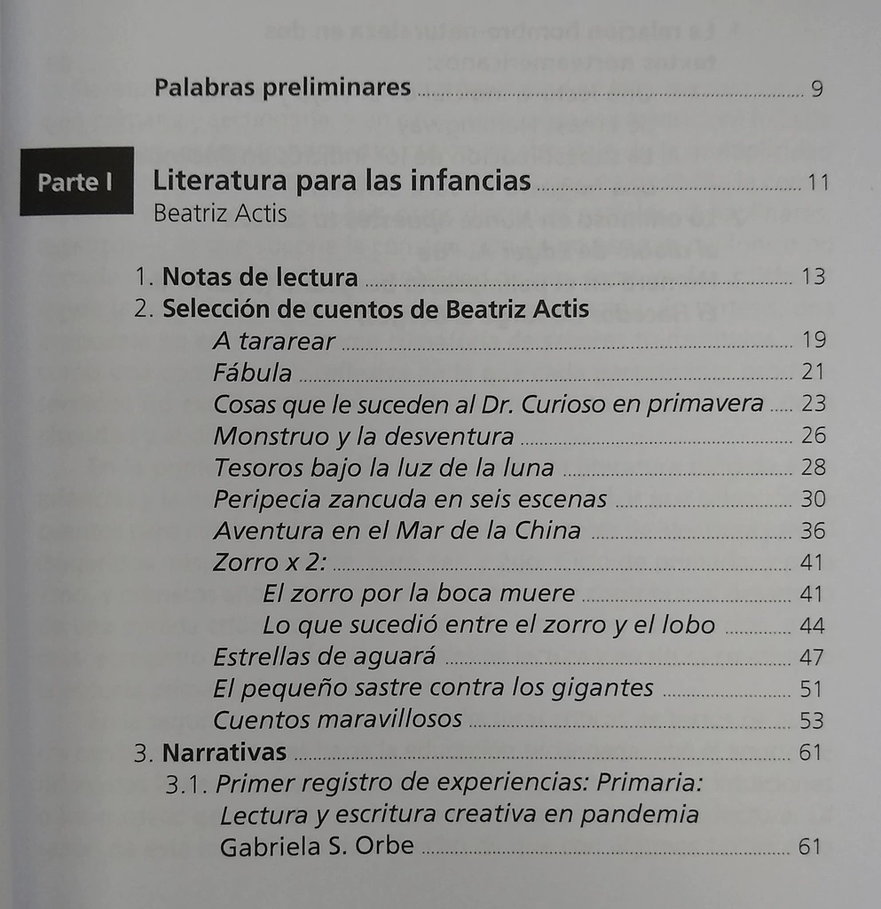 La literatura en la escuela habilita la reflexión, el posicionamiento crítico, el abordaje de la multiplicidad de sentidos que permiten pensar los textos. También posibilita la comunicación interdiscursiva con otros discursos sociales, disciplinares, artísticos, lo que supone la construcción de un espacio polifónico no cerrado ni unidireccional, una posibilidad de leer, comprender y disfrutar desde la subjetividad y también desde la cooperación. La escuela es un ámbito propiciatorio de la alteridad y el diálogo. Este libro se centra en lecturas para educación primaria y secundaria, y en alternativas para esa transición. En la primera parte se abordan la literatura dirigida a las infancias (incluye una selección de cuentos) y el registro de experiencias de lectura y de escritura creativa en una escuela primaria durante el primer año de pandemia. En la segunda parte se proponen obras de autores canónicos orientadas hacia la educación secundaria, con el aporte de diferentes líneas teóricas, y el registro de experiencias de lectura de narrativa para jóvenes en un Instituto de Formación Docente. En síntesis, este libro incluye antología, lecturas críticas y registro de experiencias, a traves de una narrativa que da cuenta de diversos recorridos lectores en el entramado institucional.