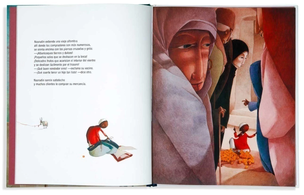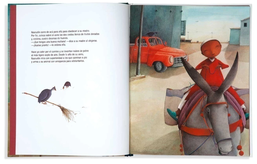 Una de las figuras preferidas de los cuentos populares árabes es Nasrudín, un héroe original, narrador popular, ahora editado por Edelvives. Una mañana, Nasrudín, montado en su asno, se dirige al mercado a vender albaricoques y huevos. Todo marcha a las mil maravillas, pero al terminar descubre que su asno ha desaparecido. Entonces, Nasrudín tiene que aguzar el ingenio para recuperar el animal.